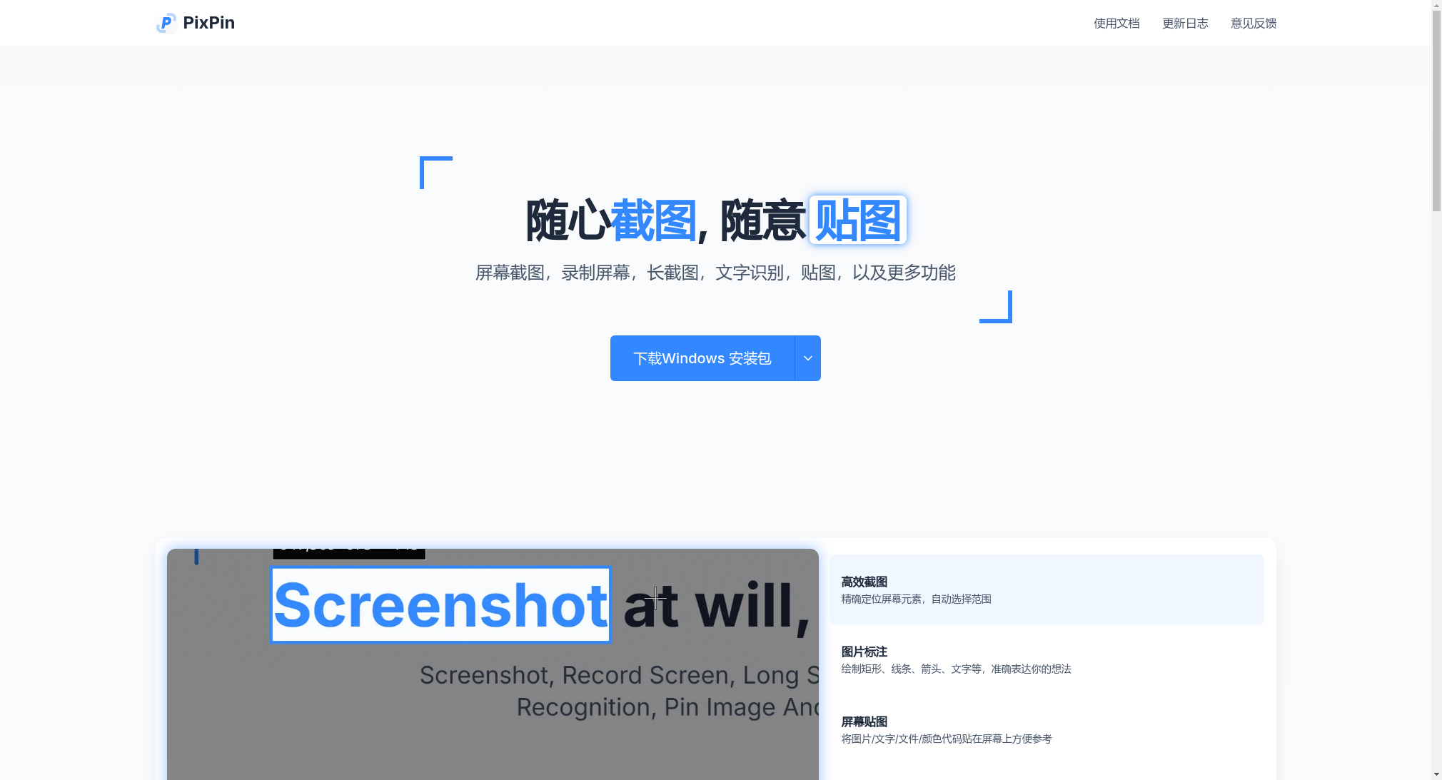 站点关键:截图软件,屏幕录制,OCR文字识别,长截图工具,屏幕贴图,图片标注,免费截图工具