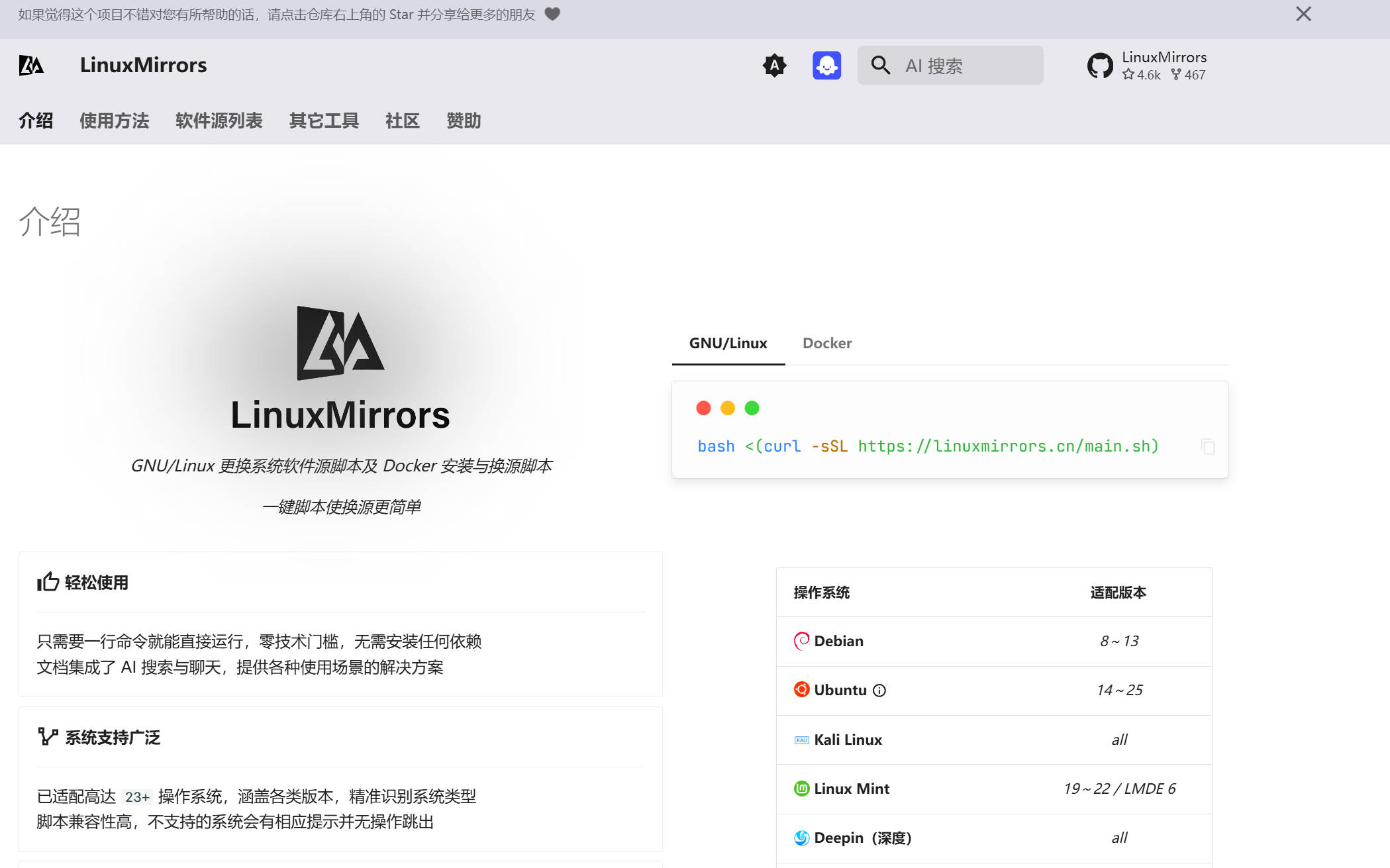 站点描述:GNULinux 更换系统软件源脚本及 Docker 安装与换源脚本
