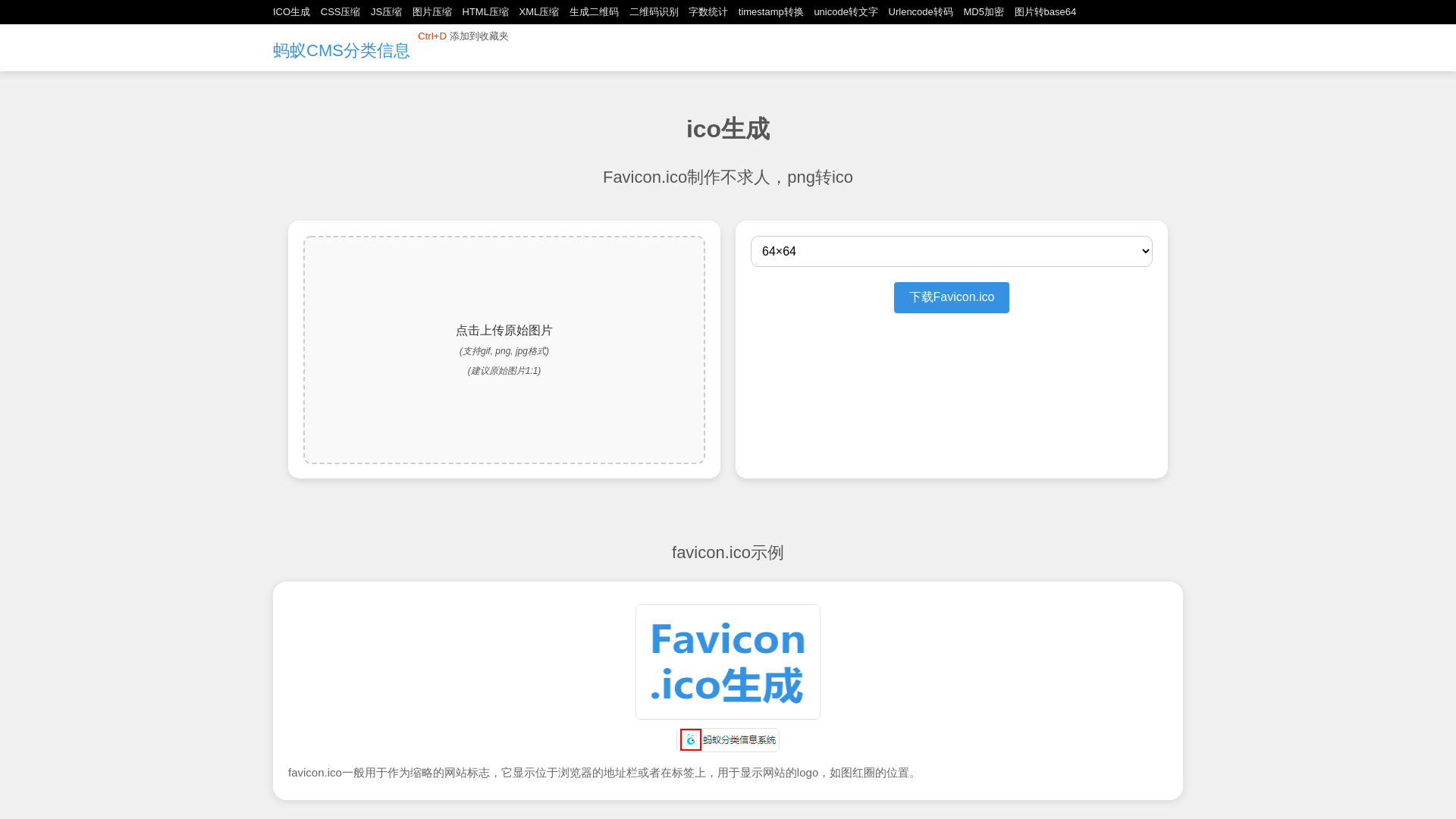 站点标题:ico生成 | Favicon制作,在线png转ico工具