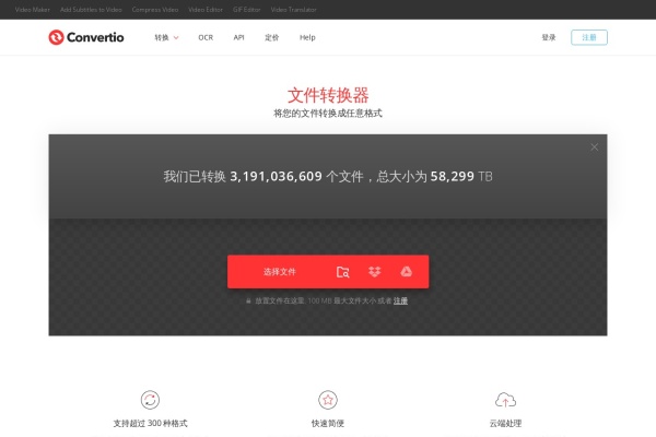 站点关键:Convertio - 在线转换文件的简单工具。支持超过309种不同的文档、图像、电子表格、电子书、文档、演示文稿、音频和视频格式。