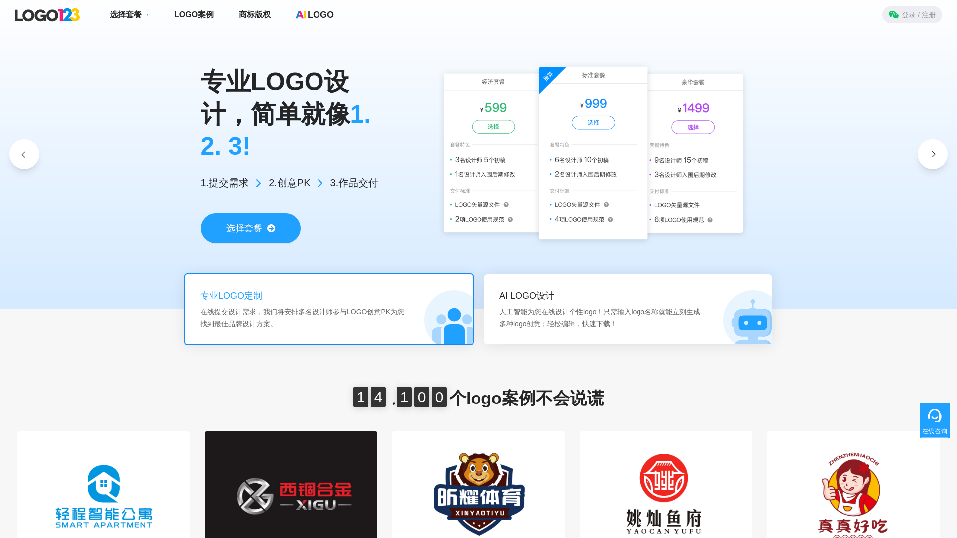站点描述:10万企业信赖的在线logo设计平台。LOGO123为中小企业提供经济实惠的logo设计服务。智能化设计公司logo,商标设计,标志设计及企业VI。在线下单,立刻获得原创logo设计方案!