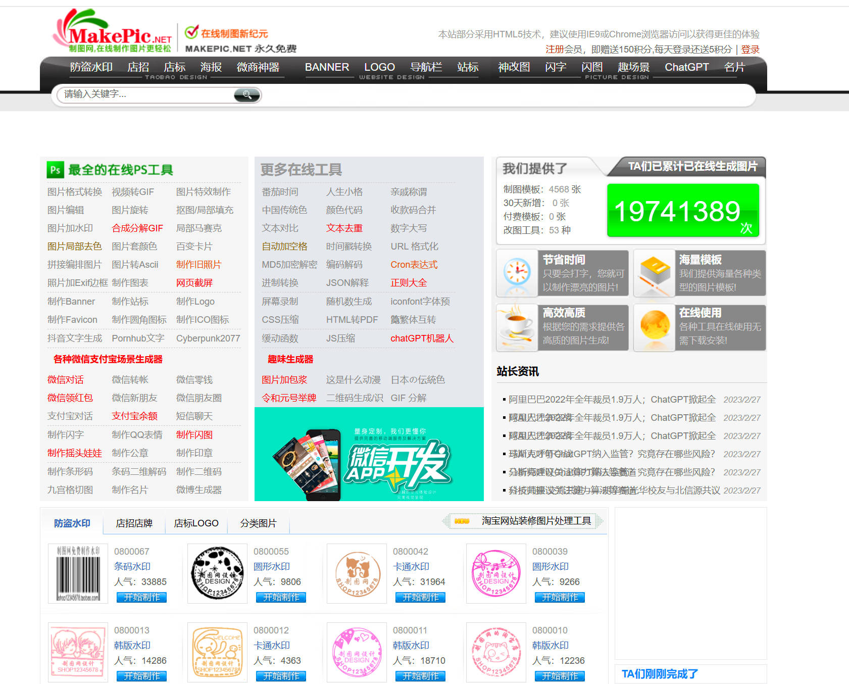 站点描述:在线PS图片,在线图像处理,在线图片处理工具,GIF生成,闪图生成,闪字生成,流光字制作,公章制作,印章制作,图片加马赛克,图片加水印,图片去水印,条形码生成,二维码生成,BANNER制作,LOGO在线制作,站标在线制作,店招在线制作,店标在线制作,水印制作,微信场景生成器,微信对话生成器,制图网,改图网站