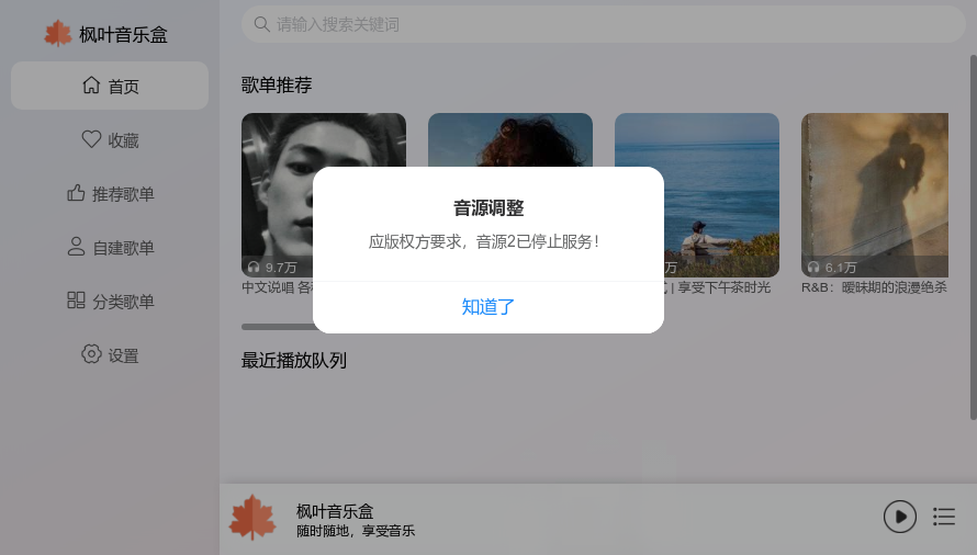 站点描述:枫叶音乐盒,一个在线音乐播放器。点开就能听音乐,随时随地享受音乐,支持在线播放、搜索、收藏、导入音乐APP歌单、自建歌单、歌单推荐/分类等功能。
