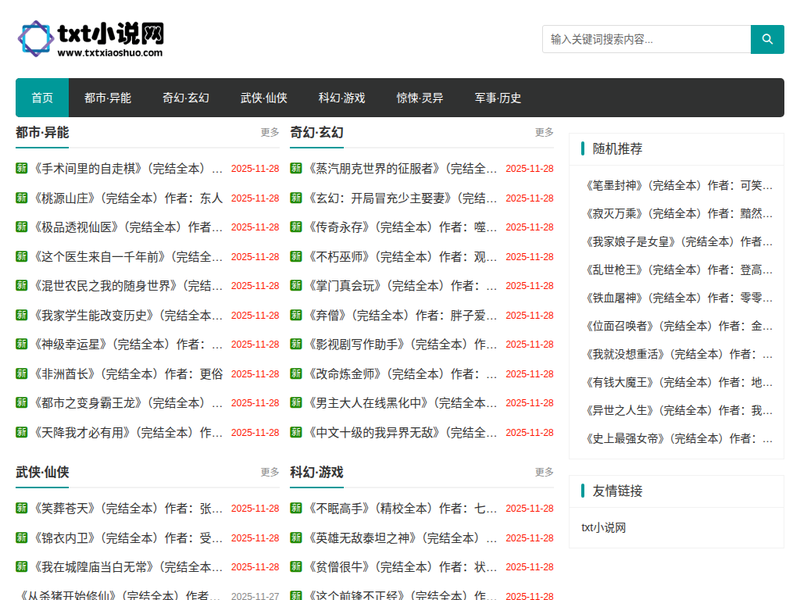 站点标题:txt小说网-全本完结txt小说下载-精校小说txt下载