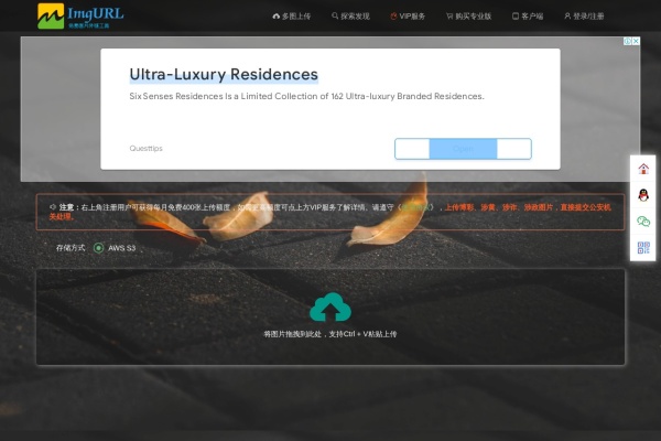 站点描述:ImgURL免费图床上线于2017年12月,累积托管图片超过100万。ImgURL可以快速将图片转换为URL链接,为您提供简单、稳定、可信赖的图片上传于外链分享服务。
