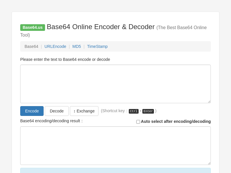 站点描述:Base64 在线编码解码 | Base64 加密解密 - Base64.us