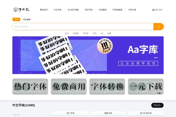 站点描述:字体家是一家开发书法字体的网站平台,含有正版付费字体,免费字体下载和手写字体下载,并提供字体下载大全免费,致力于打造免费、平价字体网,另外还有各种字体在线转换程序,如楷书字体转换、草书字体在线转换,书法素材在线下载。