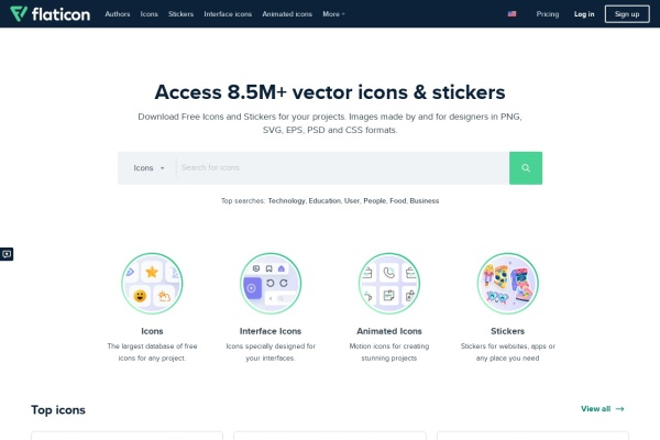 站点描述:为您的项目下载免费的图标和贴纸。由设计师制作并为设计师提供的资源。PNG,SVG,EPS,PSD和CSS格式