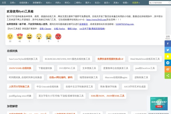 站点描述:在线工具网是一个集合了众多在线工具的神奇工具箱,集齐超多小工具,无需注册和下载安装即可免费使用各种在线工具,包括了:文档手册、在线转换、加密解密、站长工具、代码开发、二维码相关、生活工具等