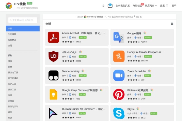 站点关键:Chrome 扩展商店,Chrome 扩展分类,全部,Crx搜搜