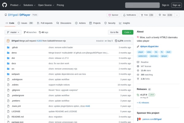 导航首页 » 开源项目 » DPlayer播放器