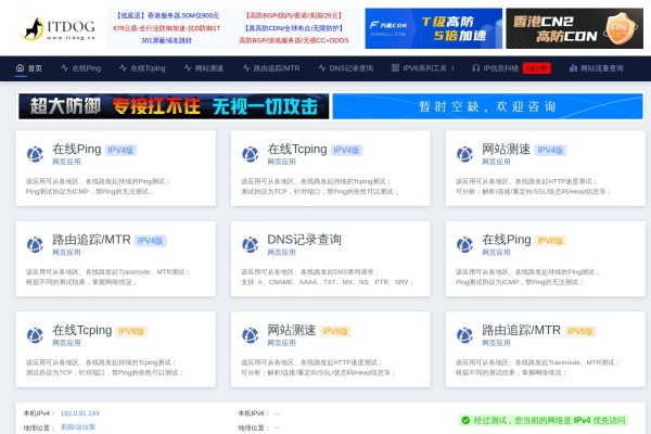 站点关键:ITDOG,ping测试,tcping测试,网站测速,HTTP测速,在线ping,在线tcping,网络延迟,延迟测试,路由追踪,在线MTR,DNS查询