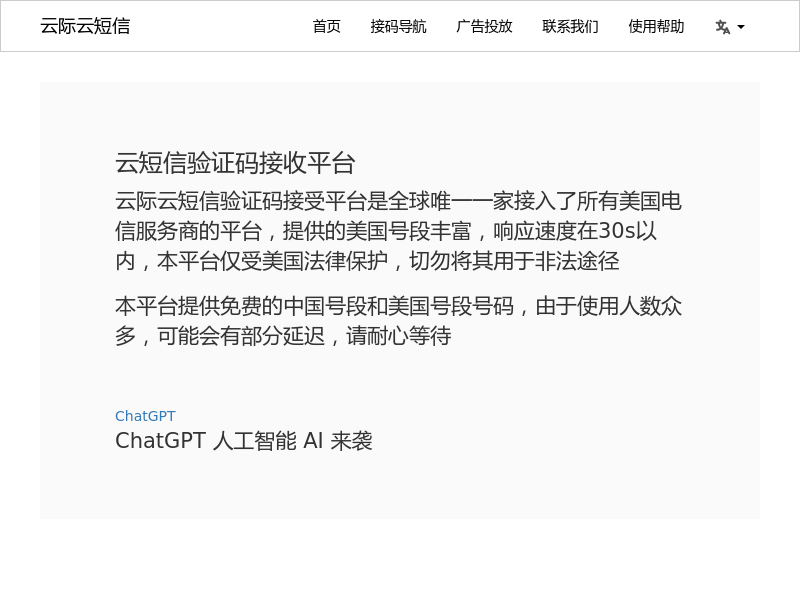 站点标题:云际云短信 -- 真正的免费云短信平台 | Receive SMS | Cloud SMS