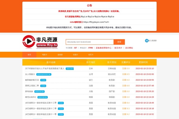 站点描述:非凡资源备用网址:ffzy1.tv ffzy2.tv ffzy3.tv ffzy4.tv ffzy5.tv,http://svip.ffzyapi8.com/