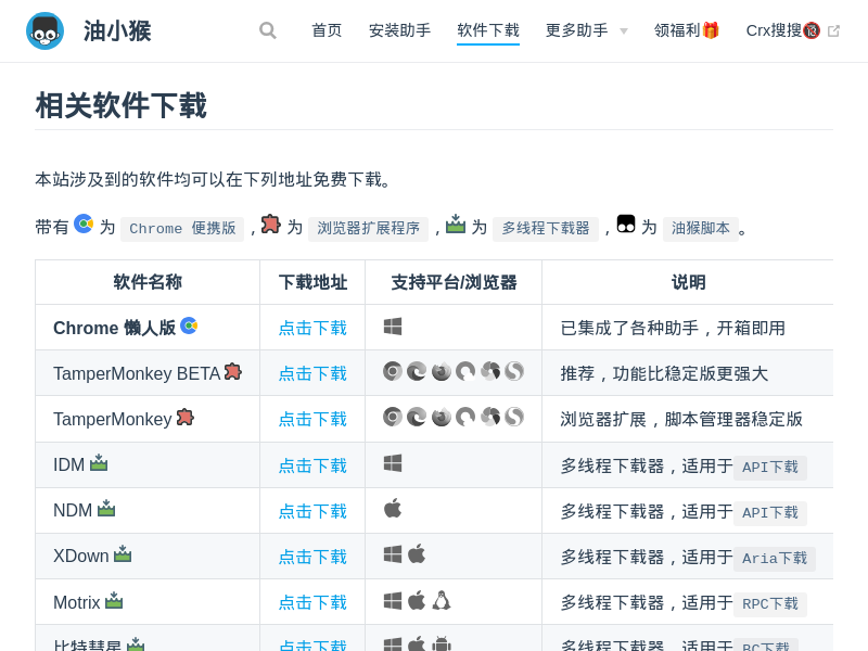 站点关键:油小猴,油猴脚本,Tampermonkey,Mactype助手,网盘智能识别助手,夜间模式,网盘直链下载助手,网页加速,网盘下载助手,网盘直链,下载助手,直链下载,网盘助手,网盘解析,油猴idm,网盘提速,网盘限速,IDM,XDown,Aria