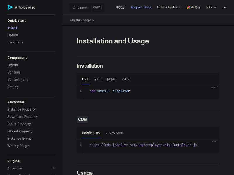 站点域名:www.artplayer.org
