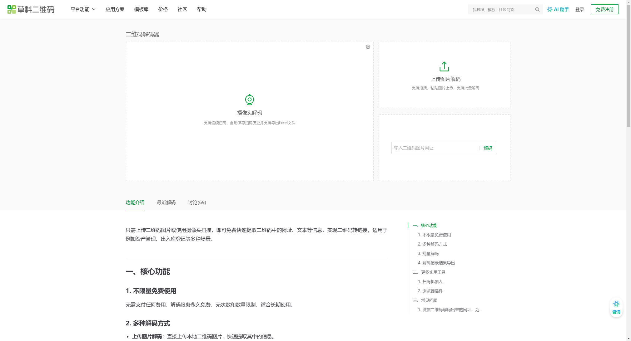 站点描述:免费在线二维码解码器,可通过上传或拖拽微信、支付宝、QQ等二维码图片、输入二维码图片地址、电脑摄像头扫描二维码等方式解析二维码,快速获取二维码内容或重新生成二维码