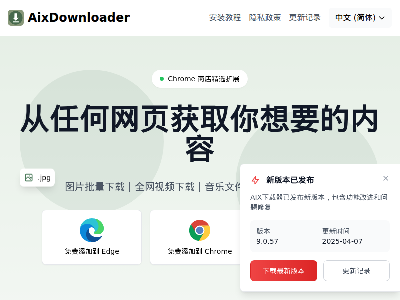 站点描述:一键批量下载网页图片、视频、音频等内容,支持主流网站,完全免费。AIX智能下载器可高效实现下载管理,网页图片,视频,音频等内容的嗅探和下载。