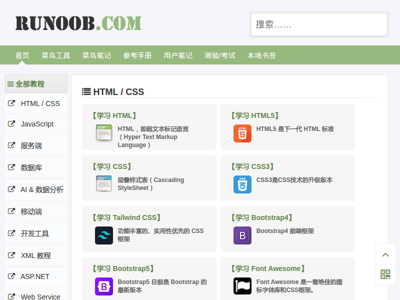 站点描述:菜鸟教程(www.runoob.com)提供了编程的基础技术教程, 介绍了HTML、CSS、Javascript、Python,Java,Ruby,C,PHP , MySQL等各种编程语言的基础知识。 同时本站中也提供了大量的在线实例,通过实例,您可以更好的学习编程。..