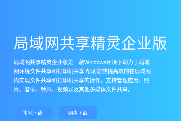站点描述:局域网共享精灵企业版是一款windows下助力于局域网环境下文件共享和打印机共享 ,有助于您快捷高效的在您的局域网内实现文件共享和打印机共享的软件。